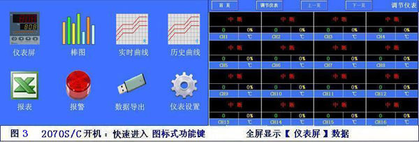 AIMINI-DCS超小型集散溫濕度監(jiān)控系統(tǒng)采用盤面安裝方式, AI儀表采用盤面或?qū)к壈惭b方式;通訊線采用【超5類屏蔽雙絞線】,安裝24VDC開關(guān)電源。開機(jī)進(jìn)入圖標(biāo)式功能選擇畫面;【主頁】上顯示圖標(biāo)【調(diào)節(jié)儀表】、【流量儀表】【電量儀表】、【報(bào)警記錄】、【棒圖】、【流程圖】、【報(bào)表】、【數(shù)據(jù)導(dǎo)出】、【單條曲線】【實(shí)時(shí)曲線】、【歷史曲線】、【設(shè)置】、點(diǎn)擊進(jìn)入該功能畫面;