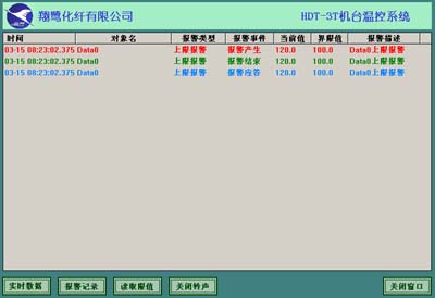 系統按照客戶的要求設置好報警產生時間、形式、長短和解除方式,實時快速準確的進行報警。并保存每一次報警的報警類型、報警時間、應答時間、結束時間、報警時報警后的實時數據、操作人員等,客戶需要的信息,對報警數據的查詢更可方便客戶進行事故分析。