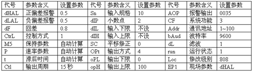 正負(fù)偏差報(bào)警:選L2 、L2模塊;設(shè)置參數(shù)AOP=0035正偏差則由AL1輸出;負(fù)偏差則由AU1輸出